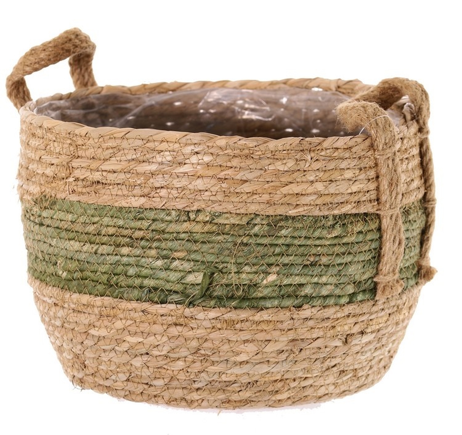 Koš na květináče UPALI, vázaná mořská tráva, 2 úchyty na přenášení, béžovo-zelený, 19cm, Ø24cm