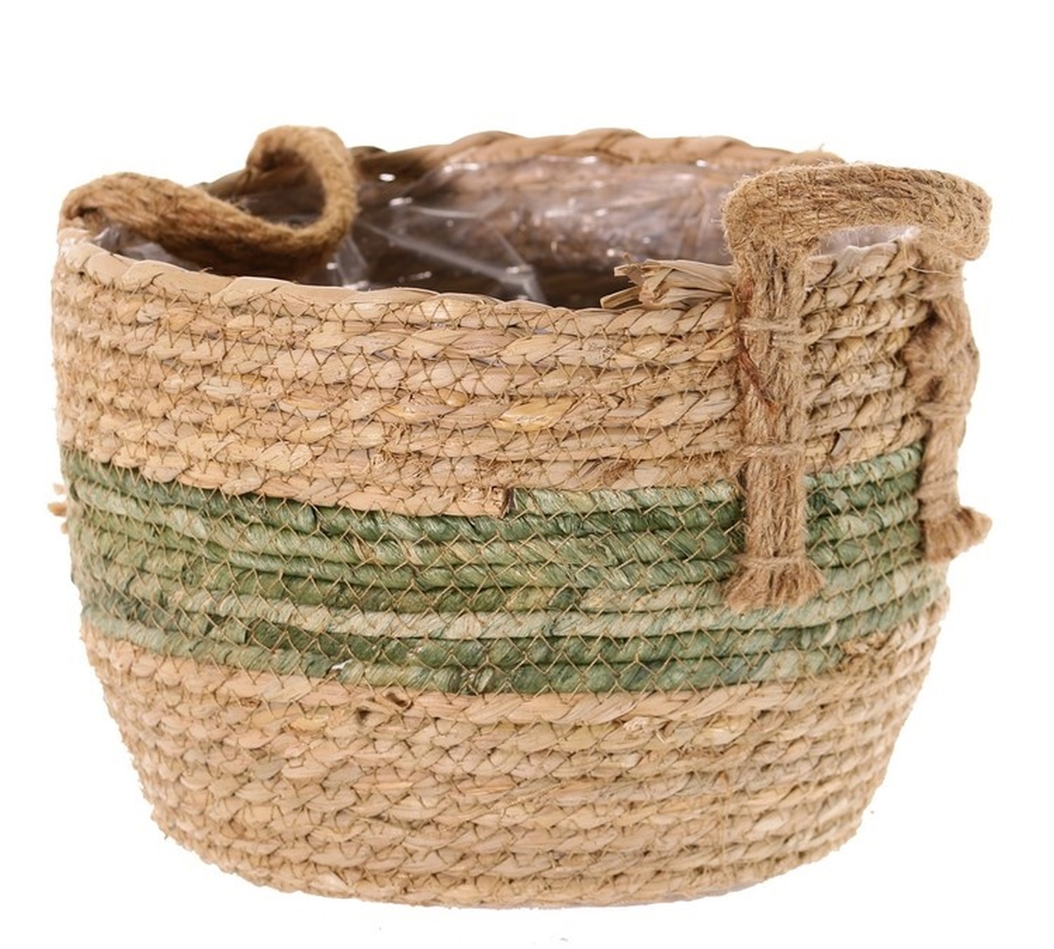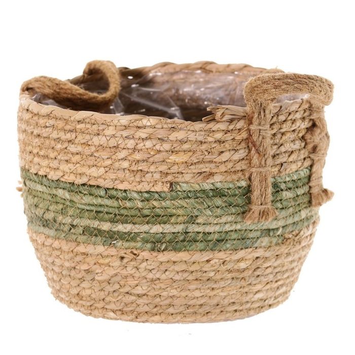 Koš na květináče UPALI, vázaná mořská tráva, 2 úchyty na přenášení, béžovo-zelený, 26cm, Ø30cm