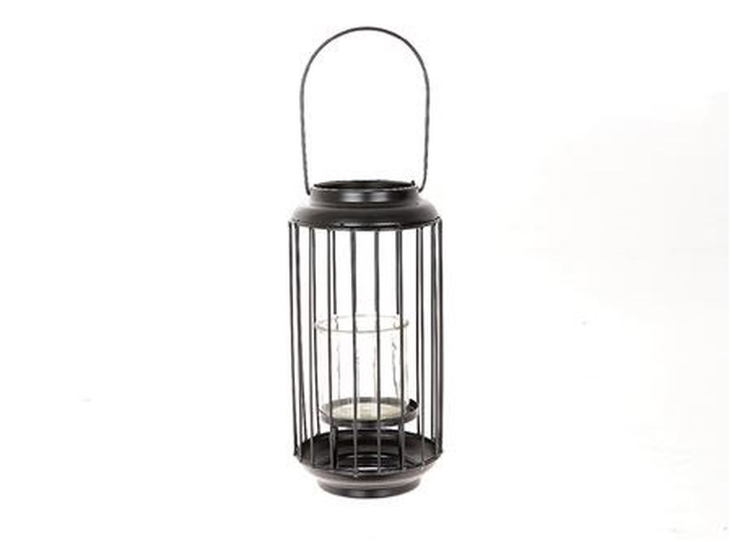 Kovová lucerna MUIRANDA s držadlem, skleněná vložka, černá, 32cm, Ø11cm