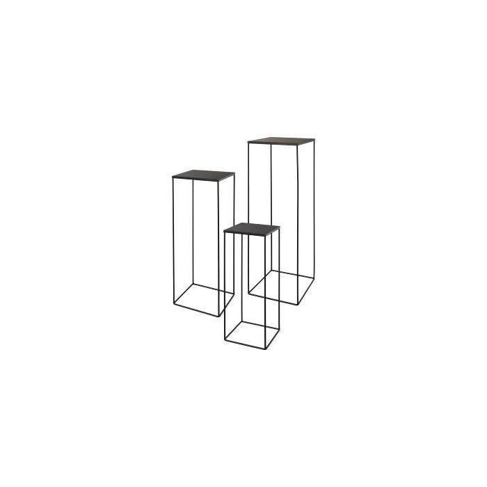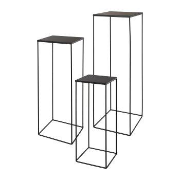 Kovový květinový stolek ULAAKA, 3 kusy, černý, 19x19x50cm, 22x22x60cm, 25x25x70cm