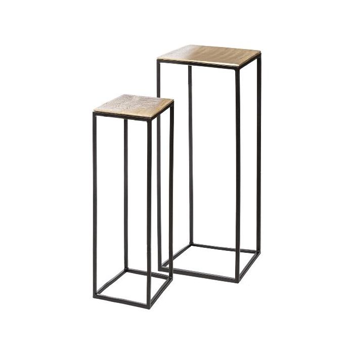 Kovový květinový stolek WAKANDA, 2 kusy, černo-hnědý, 22x22x60cm, 25x25x80cm