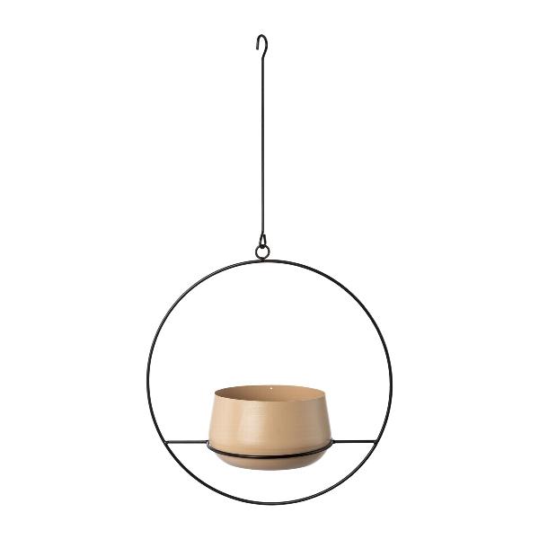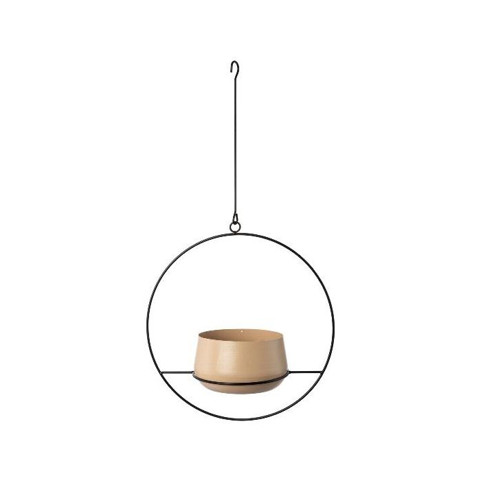 Kovový závěsný koš QUINLEE, kovový kroužek, béžovo-černý, 36x18x70cm