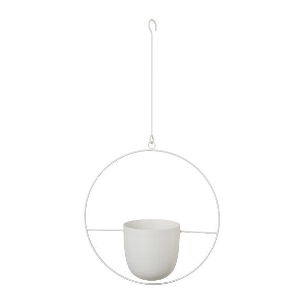 Kovový závěsný koš QUISHA, kovový kruh, bílý, 34x14x34cm