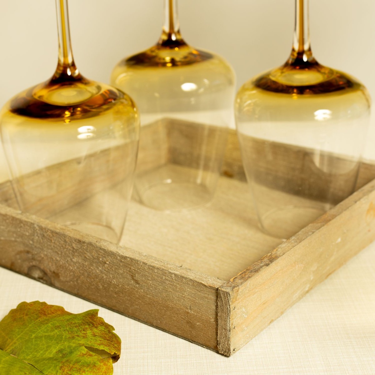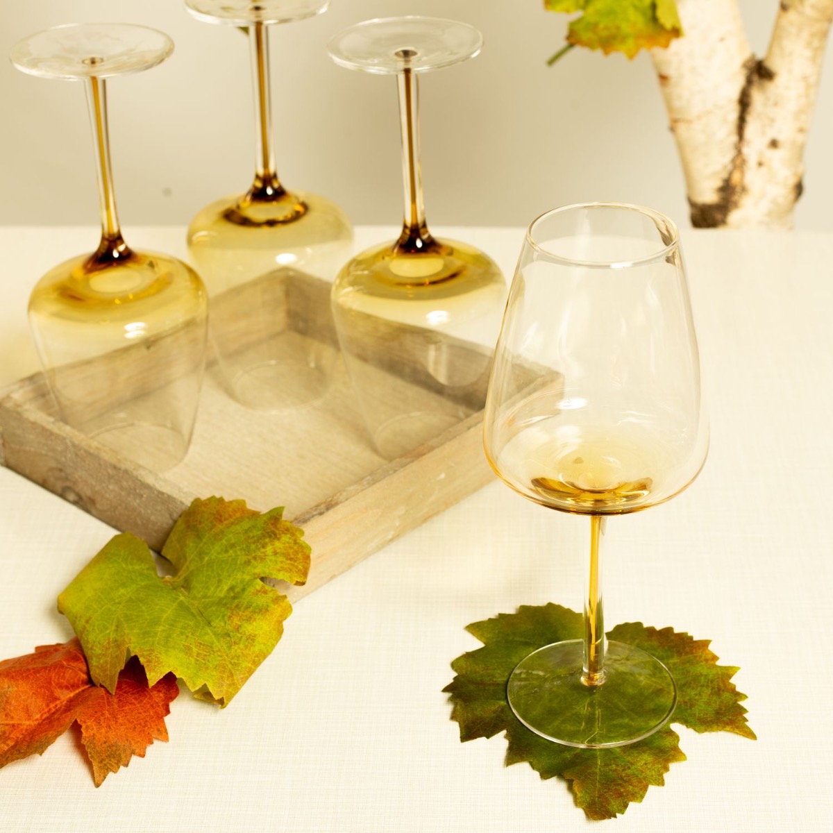 Sklenička vína! V létě je život jednodušší. Není nic lepšího než si večer vychutnat sklenku vína. Naše sklenice na víno s oranžovým barevným gradientem jsou opravdovým lákadlem pro oči a skvěle se hodí na ozdobný podnos. Barevné listy vinné révy dotvářejí vzhled a navozují hřejivou atmosféru pozdního léta. Nakupte si tento vzhled!