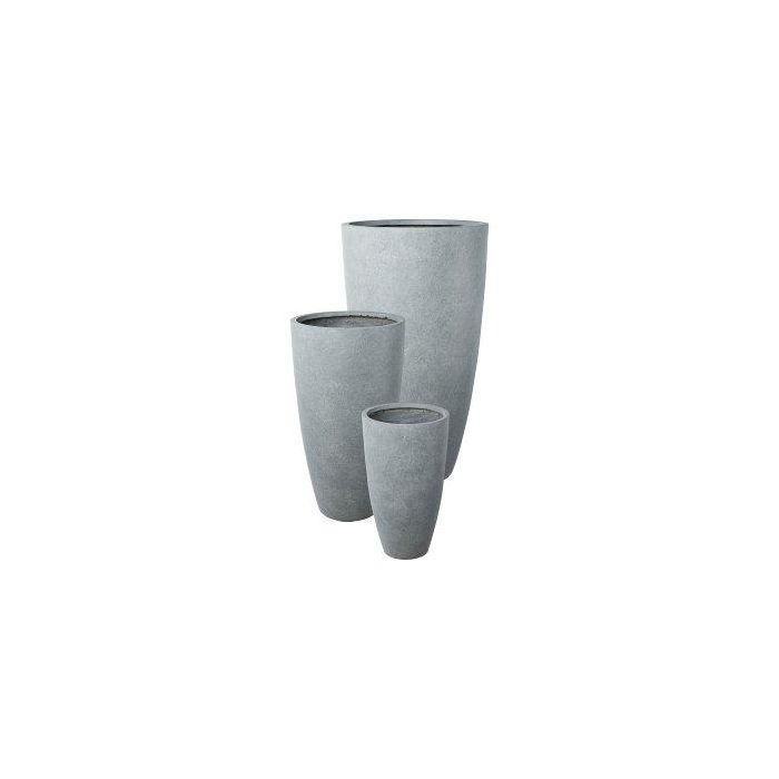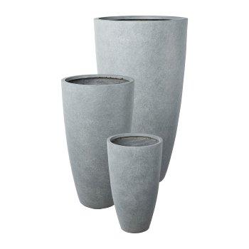 Kulatá vysoká váza na rostliny KIRIMA, 3 kusy, sklolaminát, šedá, 34x60cm, 44x80cm, 54x100cm