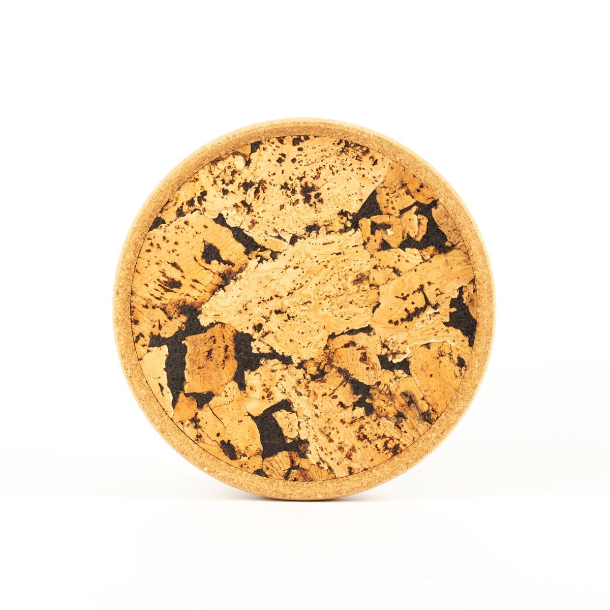 Kulatý korkový podnos FUENTES z lisovaného korku, přírodně-černý, 3cm, Ø29cm