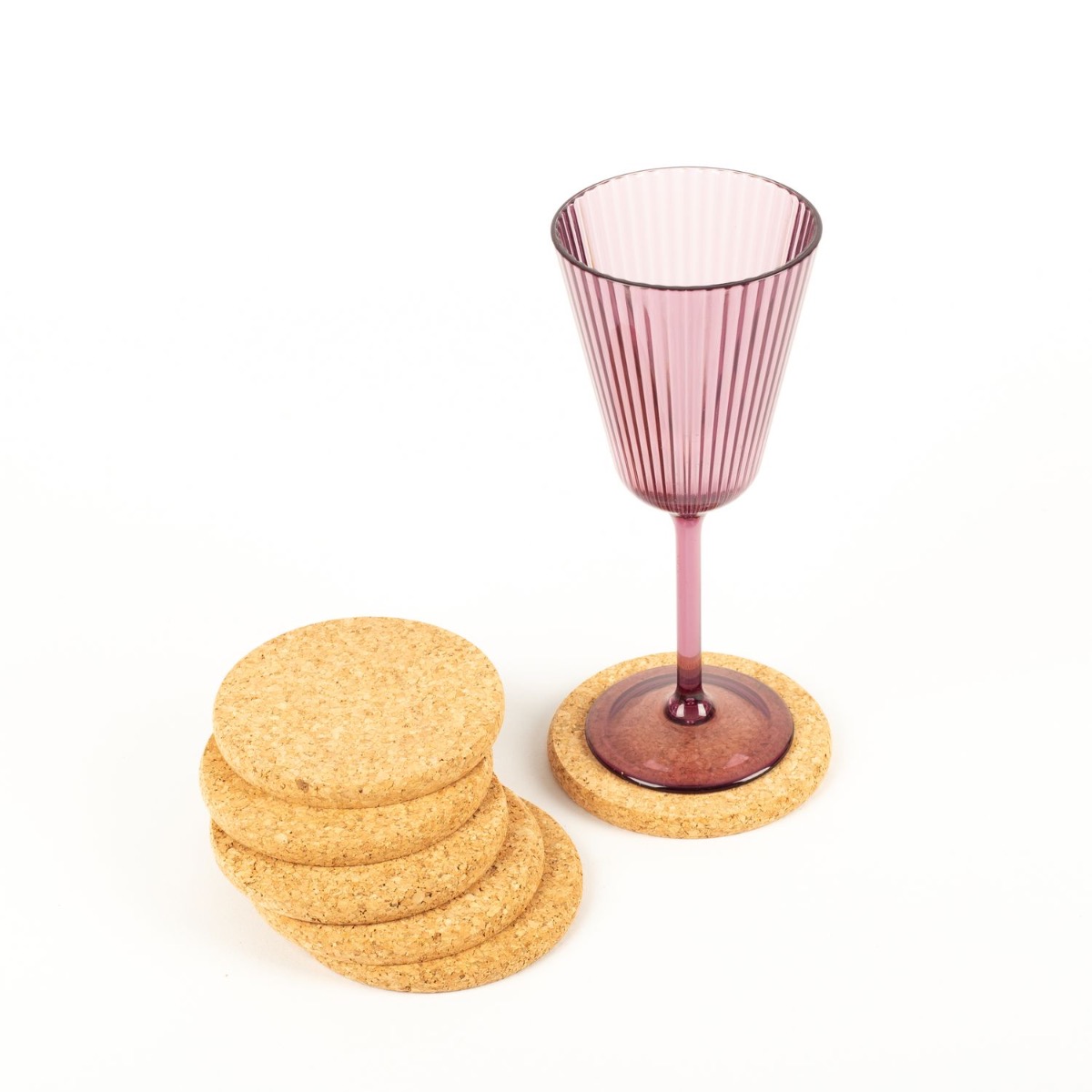 Kulatý korkový skleněný podtácek DARREN, 6 kusů, přírodní, Ø9,8cm, tloušťka 0,9cm