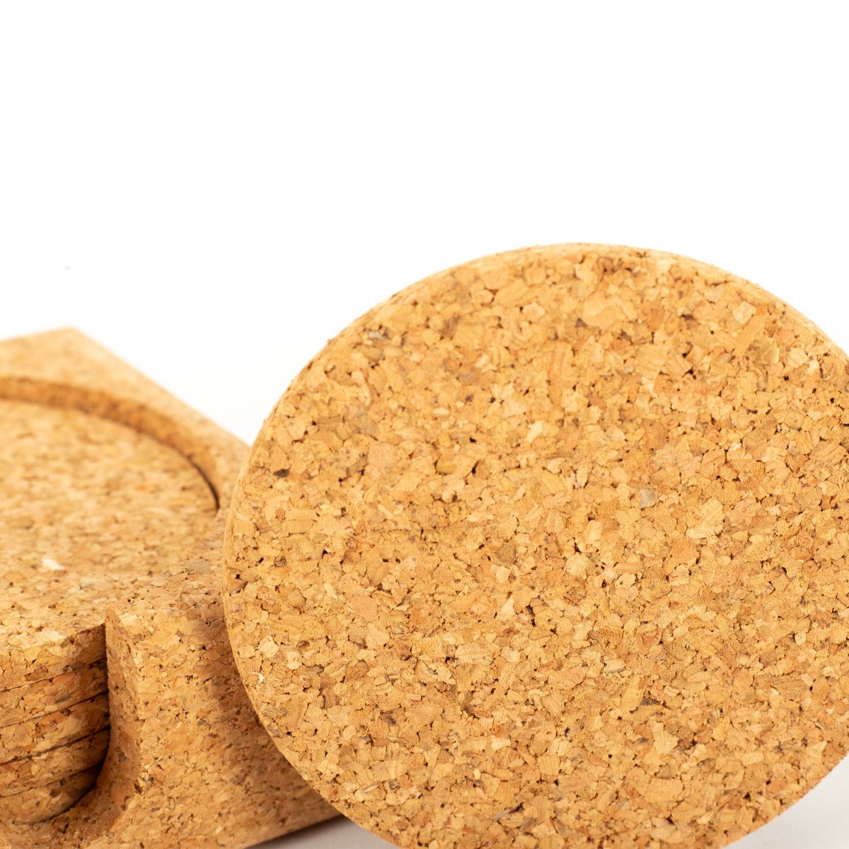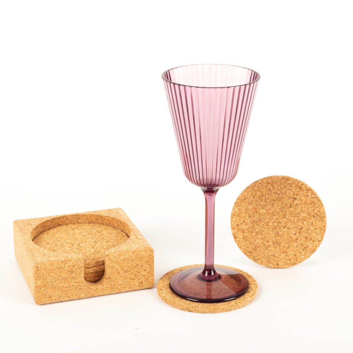 Kulatý korkový skleněný podtácek MINARA se stojánkem, 6 kusů, přírodní, Ø9cm, tloušťka 0,5cm