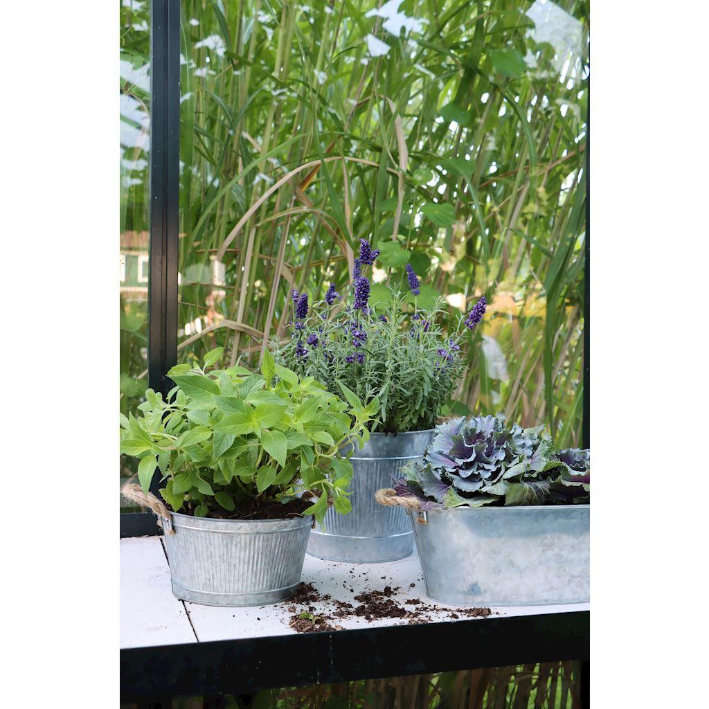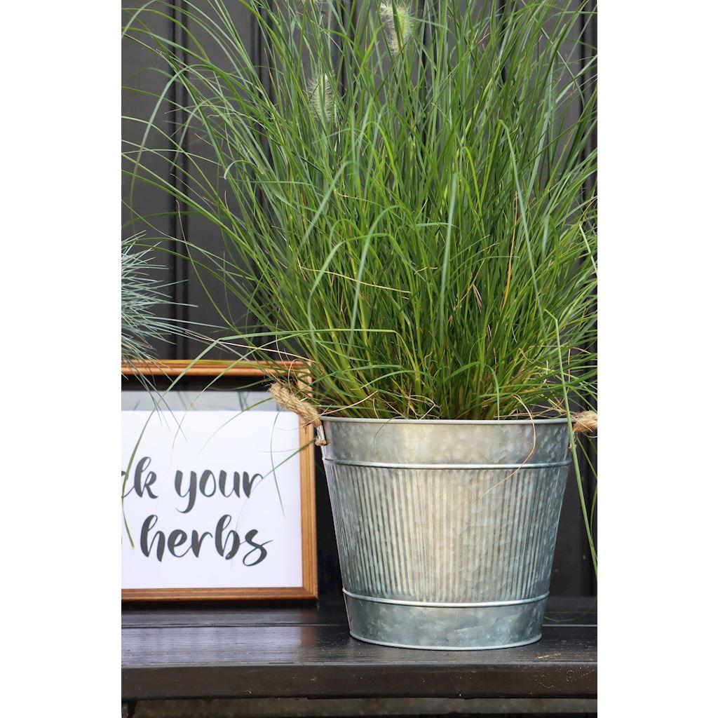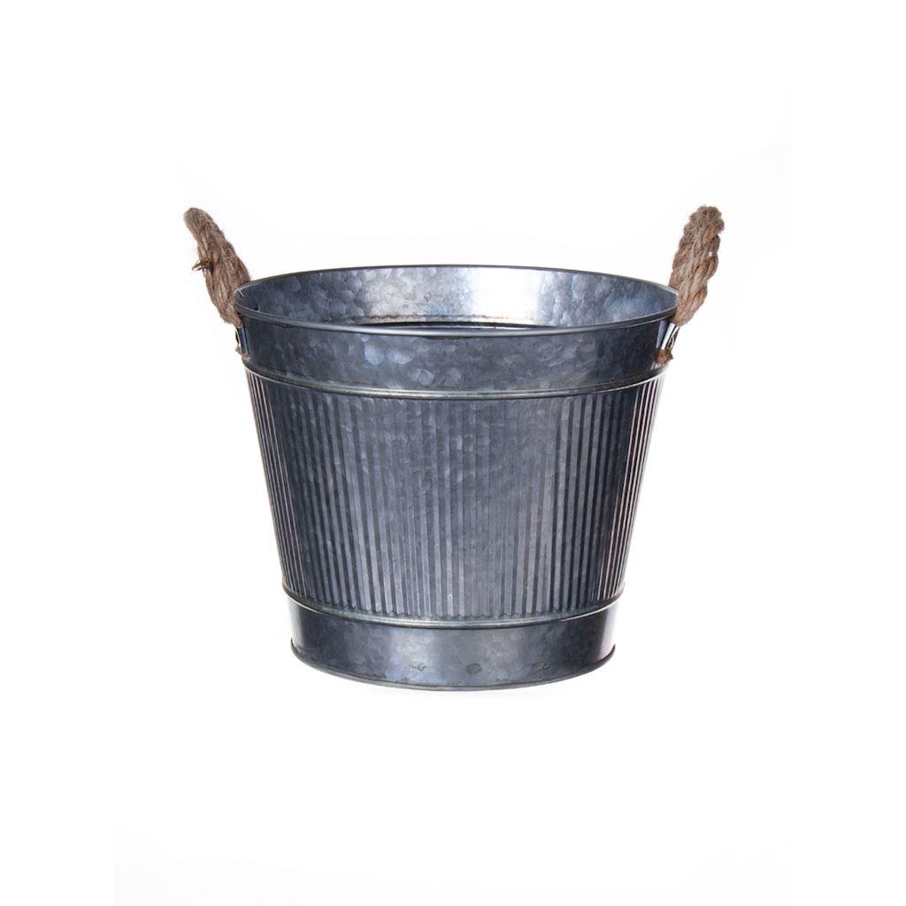 Kulatý květináč BIMETO s uchy, drážky, zinek, stříbrná barva, 18,5cm, Ø22,5cm