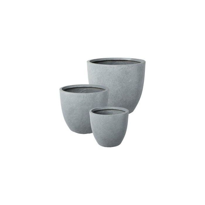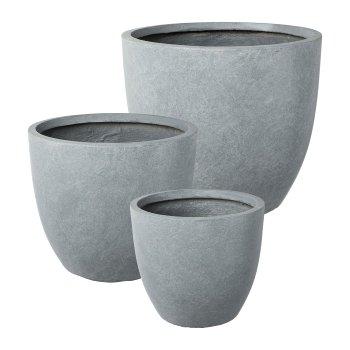 Kulatý květináč KIRIMA, 3 kusy, sklolaminát, šedý, 25x27cm, 35x39cm, 44x52cm