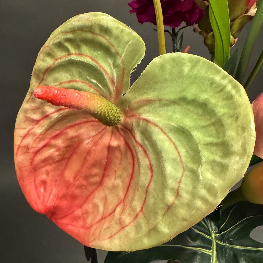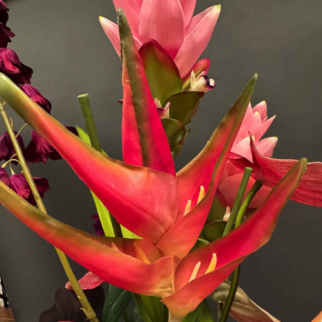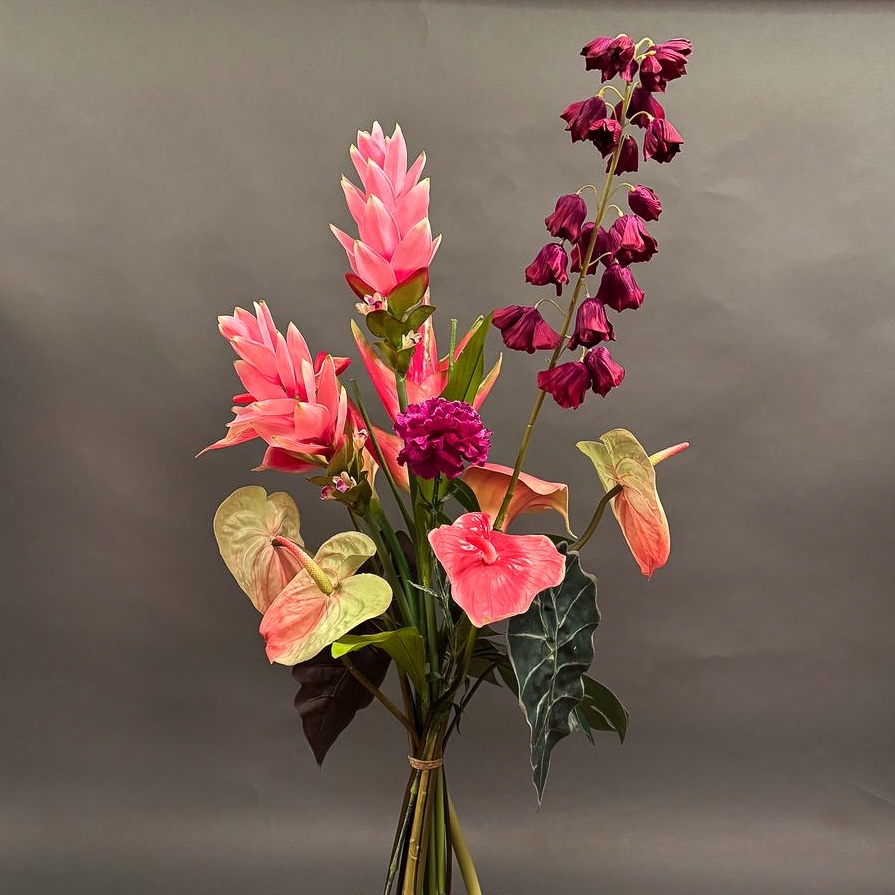 Květinová show! Tento tropický kytice upoutal pozornost Josefa při jedné schůzce. Požádal nás, abychom mu vytvořili letní aranžmá, které by připomínalo tropické zahrady nebo vzdálené země. Květinová kytice je opravdu poutavá a navozuje pravou dovolenkovou atmosféru. Exotické květiny jako anturie a helikonie zvláště vynikají a podtrhují asymetrický design celku. Perfektní jako ozdoba moderních interiérů nebo jako dárek pro lidi s citem pro výjimečné věci. Kupte si tento look!