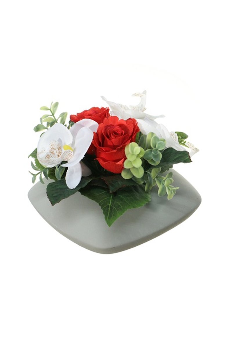 Květinové aranžmá umělá orchidej Phalaenopsis, Rose DITTE, dekorační květináč, červeno-bílá, 12cm, Ø21cm