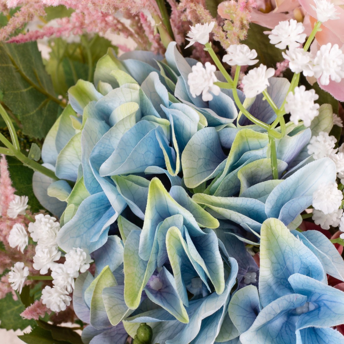 Tichý pozdrav ve tvaru květiny! Emanuela hledala krásnou kytici pro svého zesnulého otce na hřbitovní kámen, do kterého je zakomponována váza. Kytice by proto měla být naaranžována naplocho. Obzvláště se jí líbila naše kytice KAUWELA, jednoduchost s rafinovaným nádechem. Bílou květinu jsme museli nahradit růžově zbarvenou, jinak jsme mírně změnili tvar kytice, aby se k náhrobnímu kameni dobře hodila. Hortenzie jí připomínaly otcův život na venkově - letní dny strávené společně na zahradě, klid a blízkost přírody. Kytice se tak stala něčím víc než jen květinovou výzdobou: láskyplným pozdravem, který uchovává vzpomínky a vyjadřuje tiché pouto. Nakupte si vzhled!