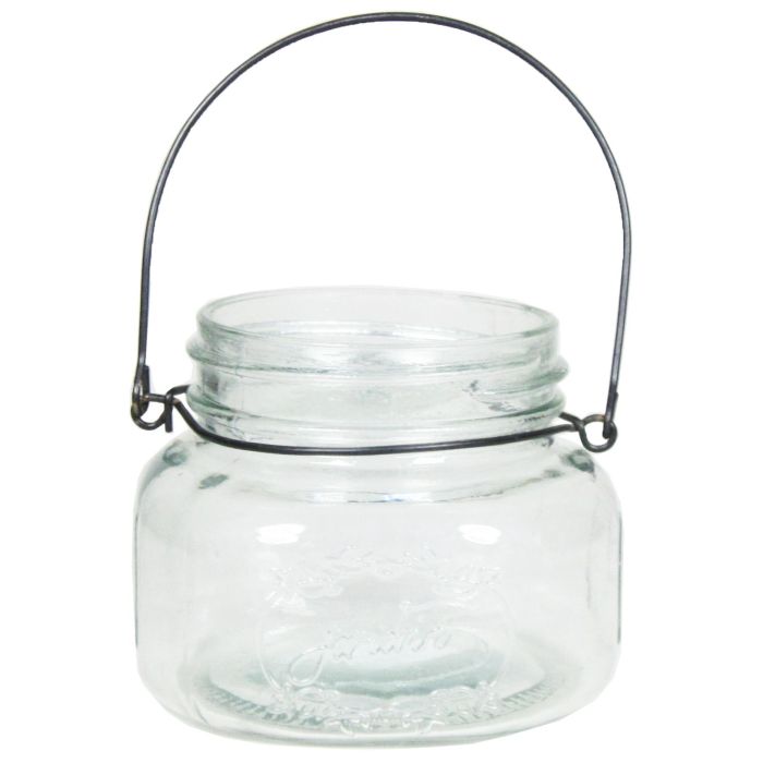Lucerna DACLAN ze skla, kovová rukojeť, čirá, 9cm, Ø10,5cm