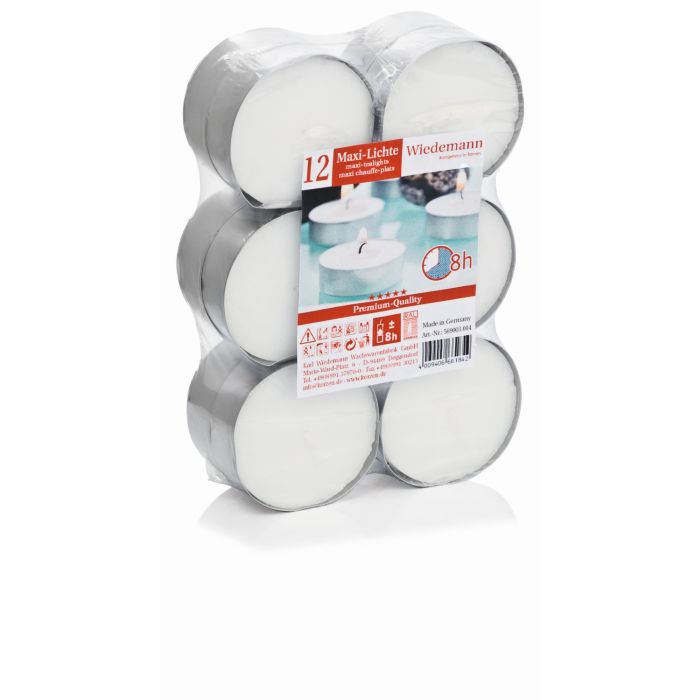 Maxi čajové svíčky KENNY, 12 kusů, bílé, 1,9cm, Ø5,7cm, 8h