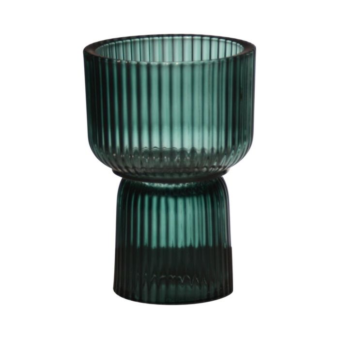 Maxi sklenice na čajovou svíčku KENSIE, drážky, zeleno-čirá, 15,5cm, Ø10,5cm