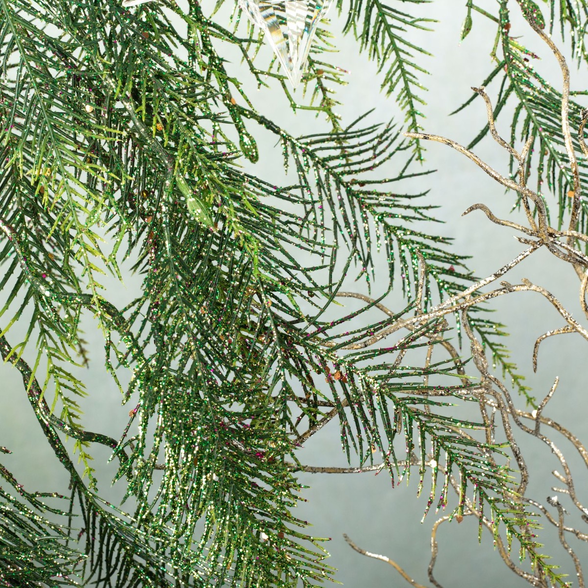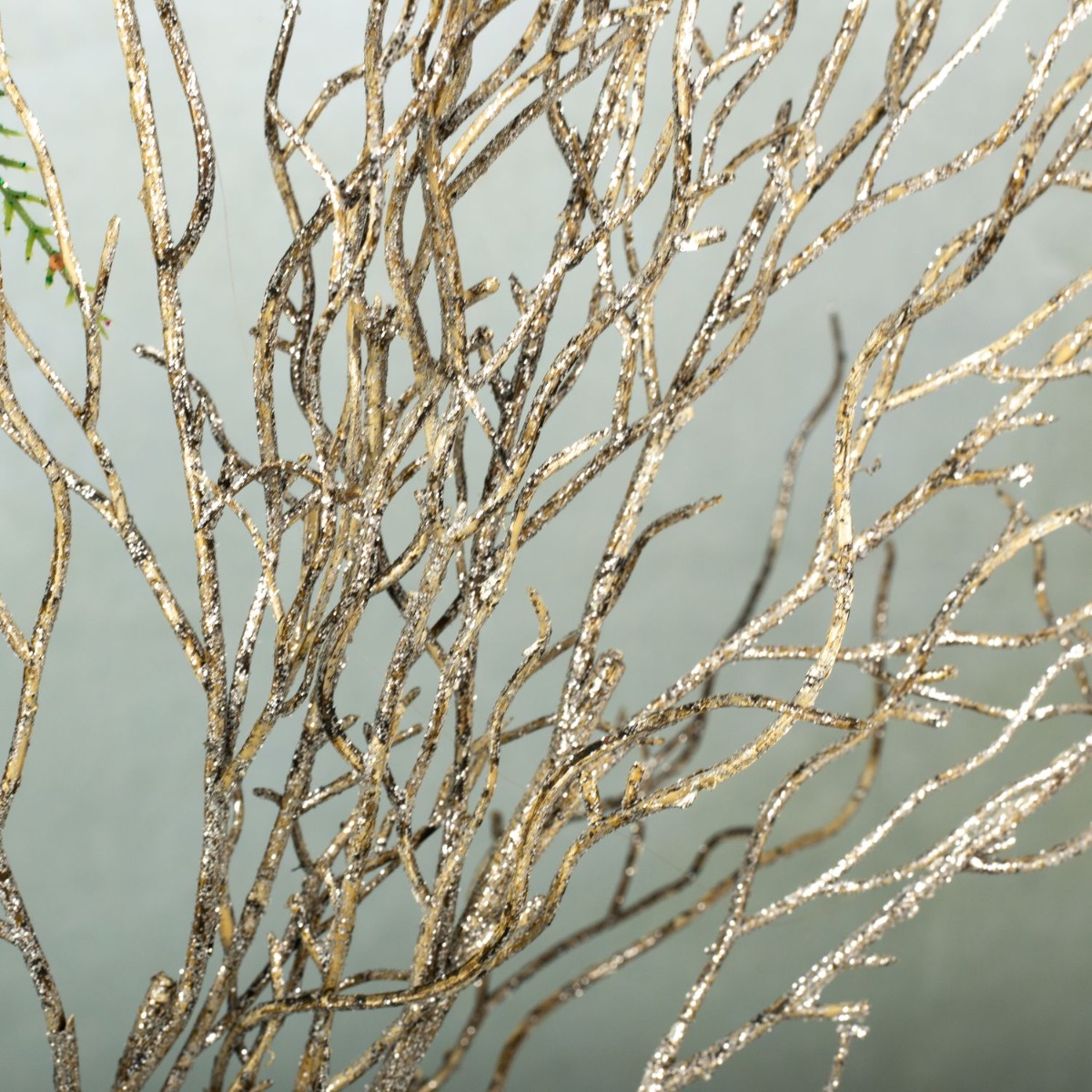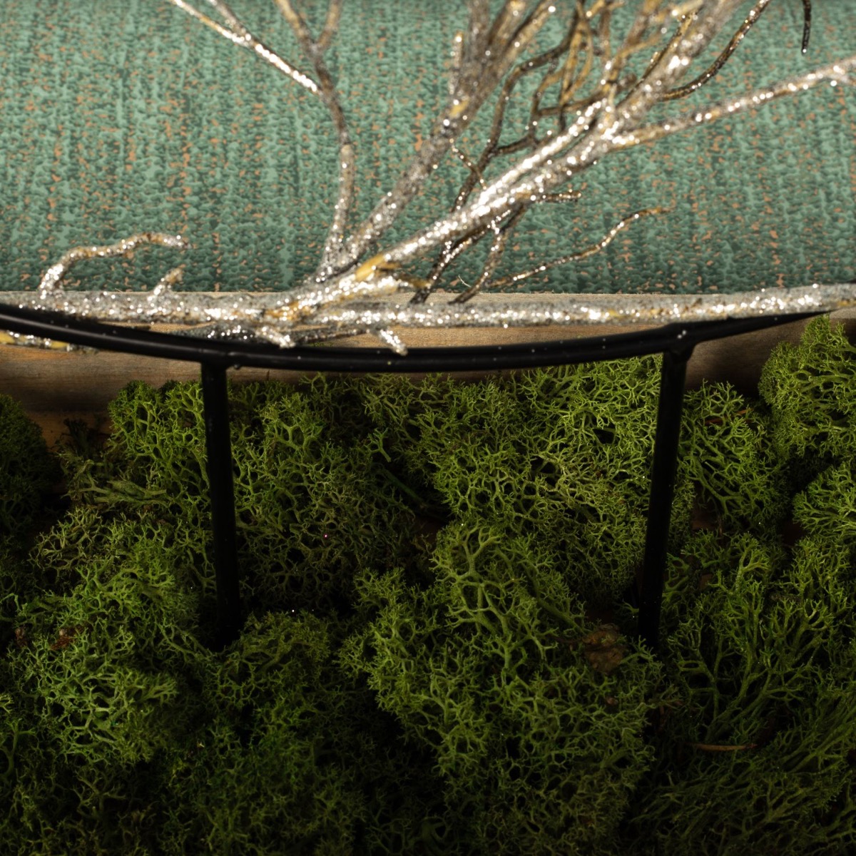 Stříbro a třpytky! Náš adventní vzhled je mimořádně elegantní a díky 4 velkým sloupovým svíčkám jej lze použít i jako adventní věnec. Klasický adventní věnec je vždy navržen ve tvaru kruhu. Katolická víra jím popisuje vzkříšení a věčnost života. Náš samostatně stojící kovový prstenec, který je vhodný i pro skvělé nápady na výzdobu po vánočním období, jsme ozdobili třpytivými větvičkami a ozdobami na vánoční stromeček. Šedý dřevěný podnos byl naplněn naším zeleným přírodním mechem, protože zelená znamená naději a život. Tento vzhled je mimořádným začátkem vánoční sezóny. Nakupte si tento vzhled!
