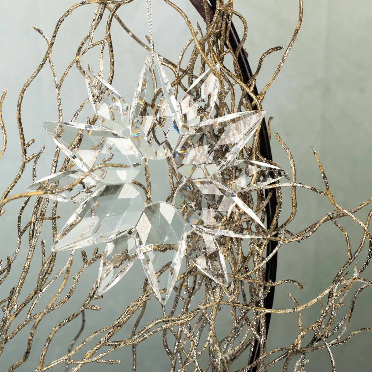 Tip k designu: Nejprve umístěte kovový kroužek do podnosu a poté jej naplňte přírodním mechem. Kolem kroužku omotejte větvičky a ozdobte je akrylovými hvězdičkami. Svíčky umístěte symetricky před aranžmá, protože jsou hlavním prvkem tohoto vzhledu.
