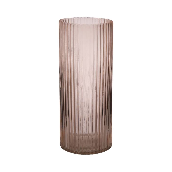Moderní skleněná váza SORCHA s drážkami, světle růžovo-čirá, 30cm, Ø12,5cm