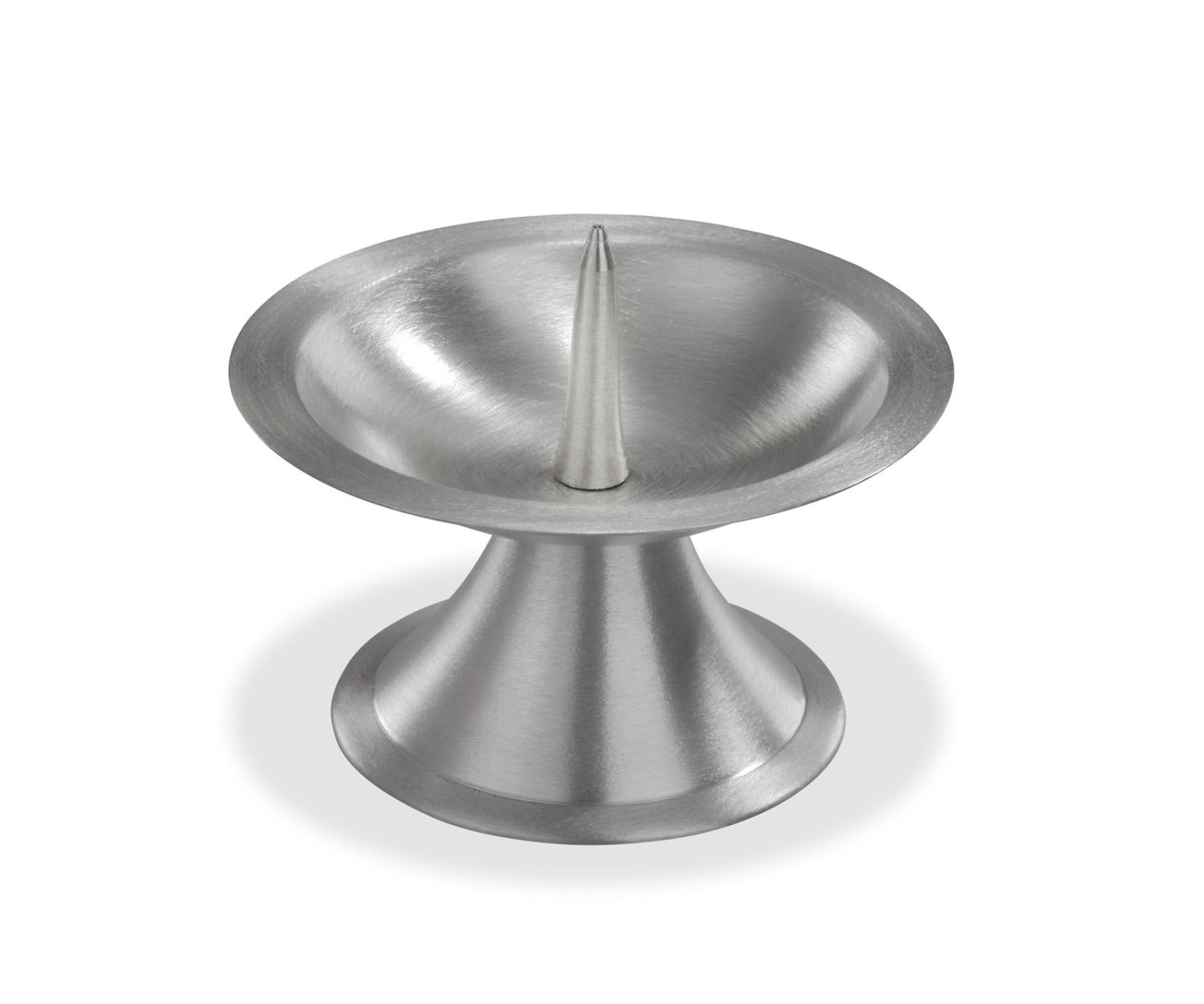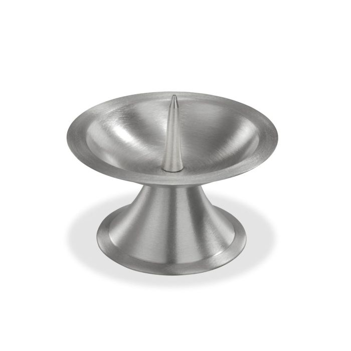 Mosazný svícen OLIVERIO s hrotem, na svíčky Ø5-6cm, poniklovaný, matně kartáčovaný, stříbrný, 5cm, Ø9cm