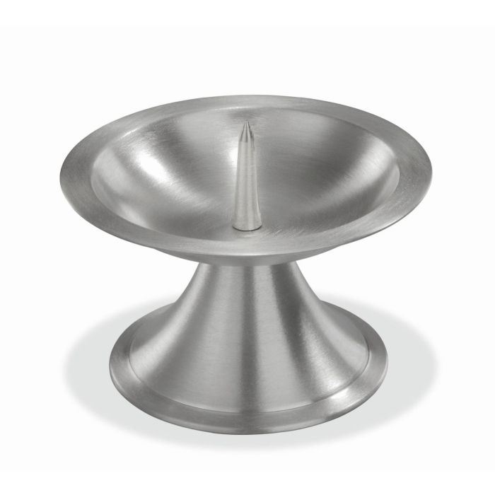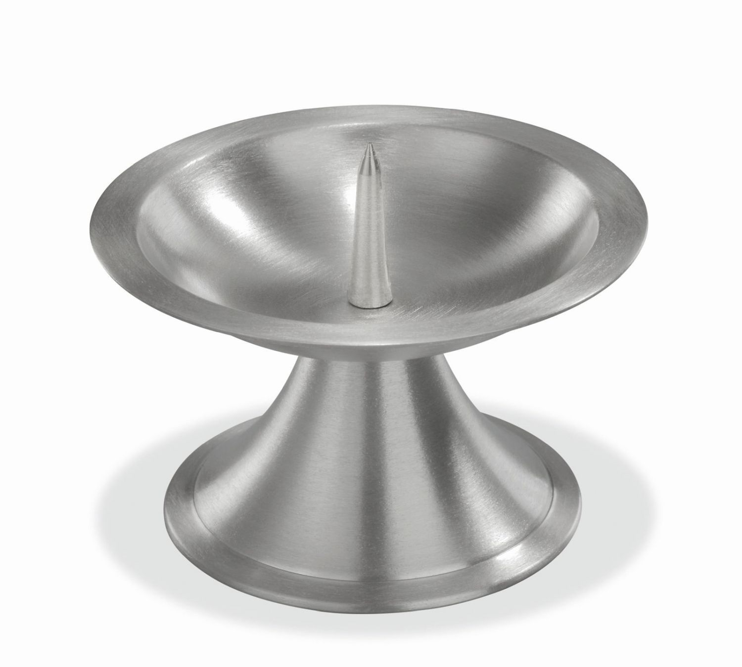 Mosazný svícen OLIVERIO s hrotem, na svíčky Ø7-8cm, poniklovaný, matný kartáčovaný, stříbrný, 6,5cm, Ø11cm