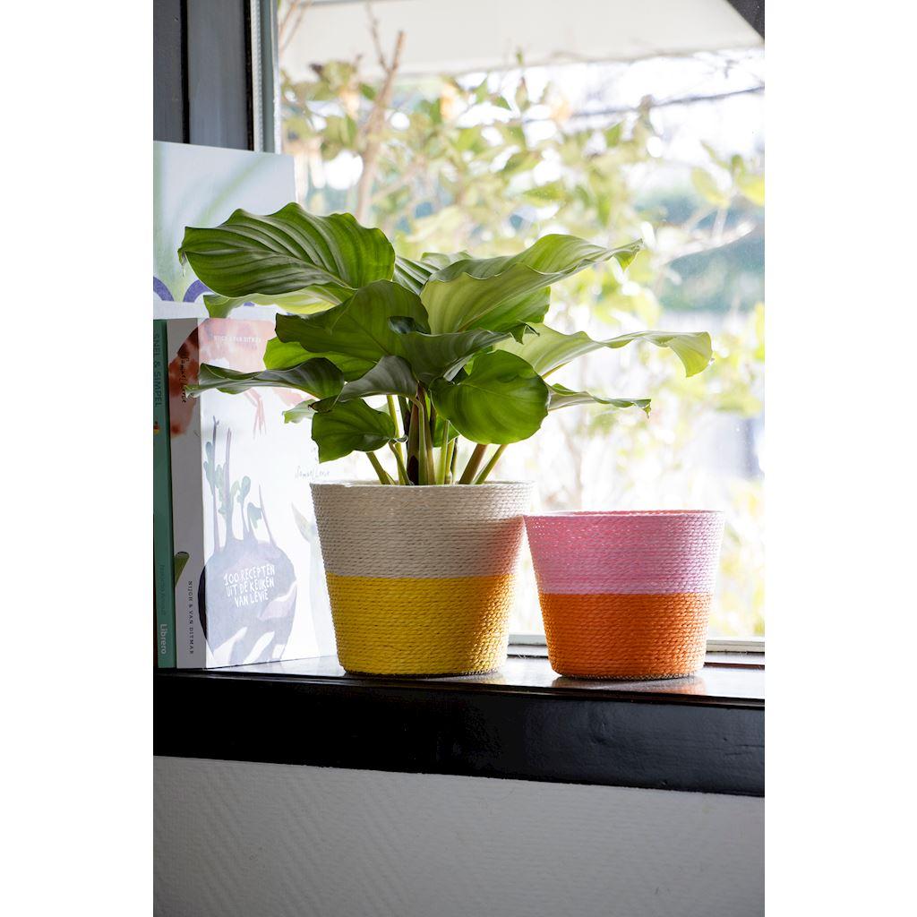 NERIONKO DUO koš na květiny, béžovo-žlutý, 13cm, Ø15,5cm