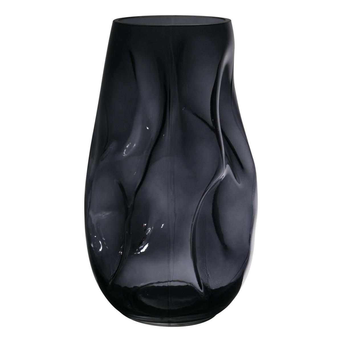 Netvarovaná skleněná váza MADALENA s důlky, šedá-čirá, 28cm, Ø14,5cm