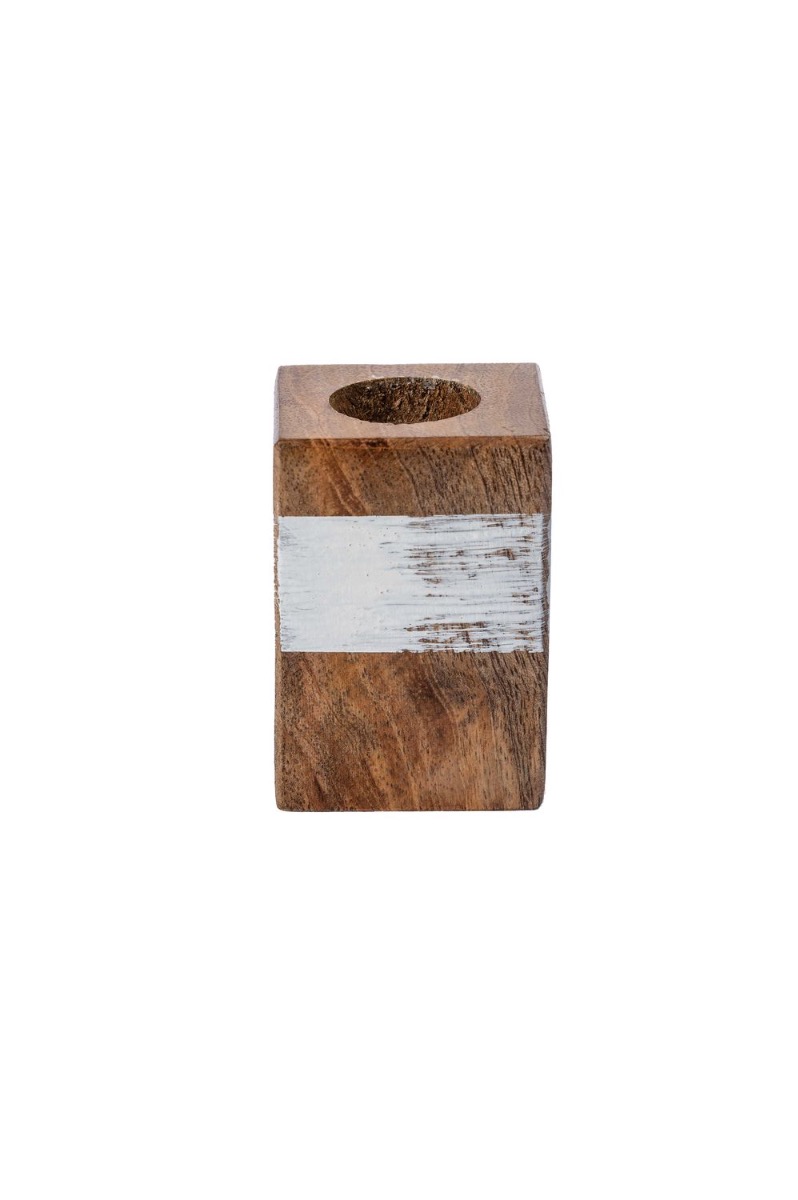 Obdélníkový dřevěný svícen KARLINA na tyčinkové svíčky do Ø2,5 cm, přírodní bílá, 4x4x6 cm