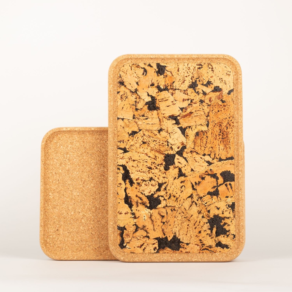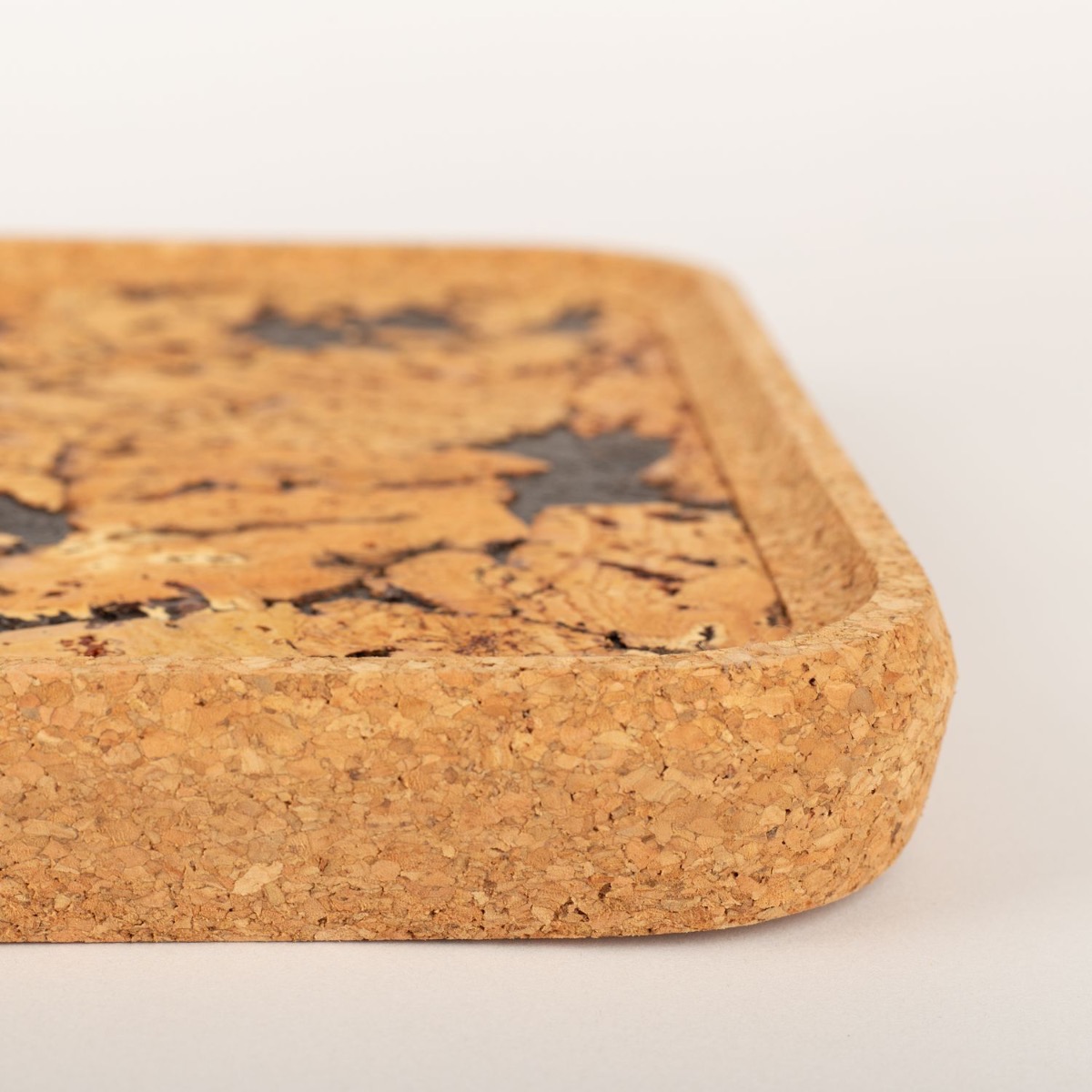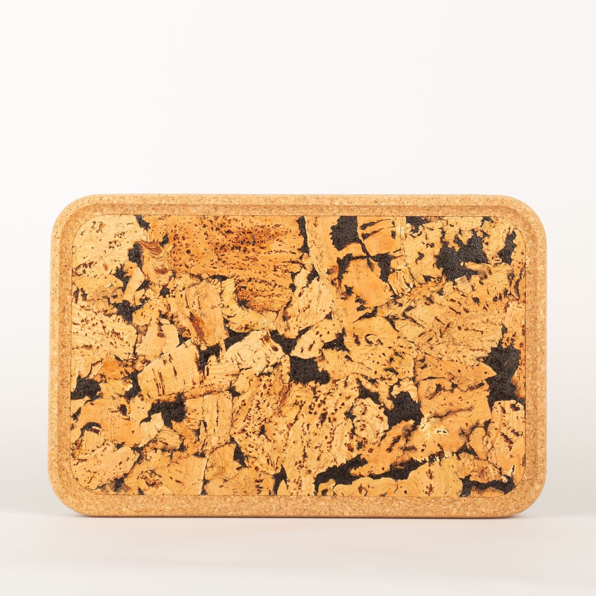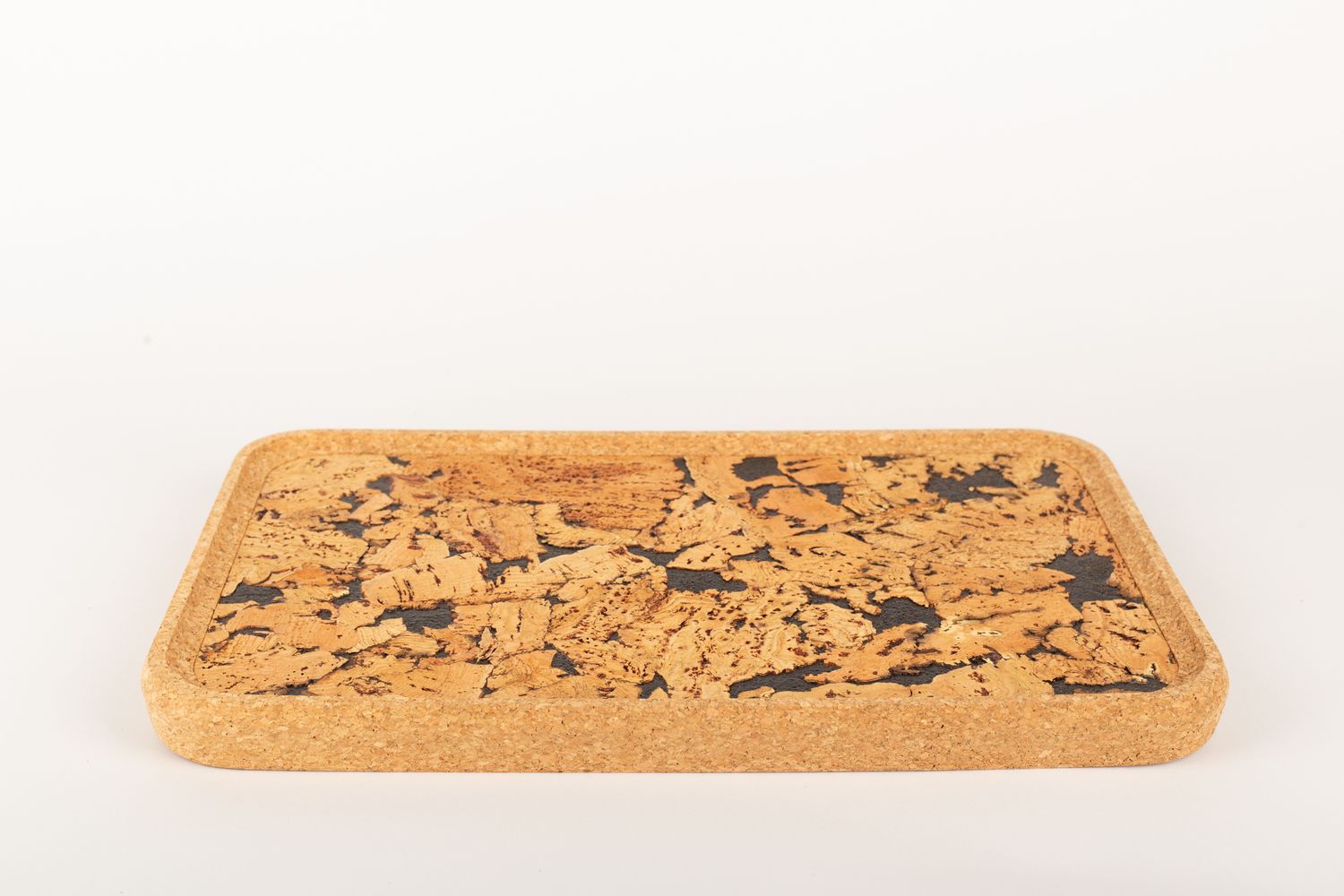 Obdélníkový korkový podnos FUENTES z lisovaného korku, přírodní-černý, 43x28x3cm