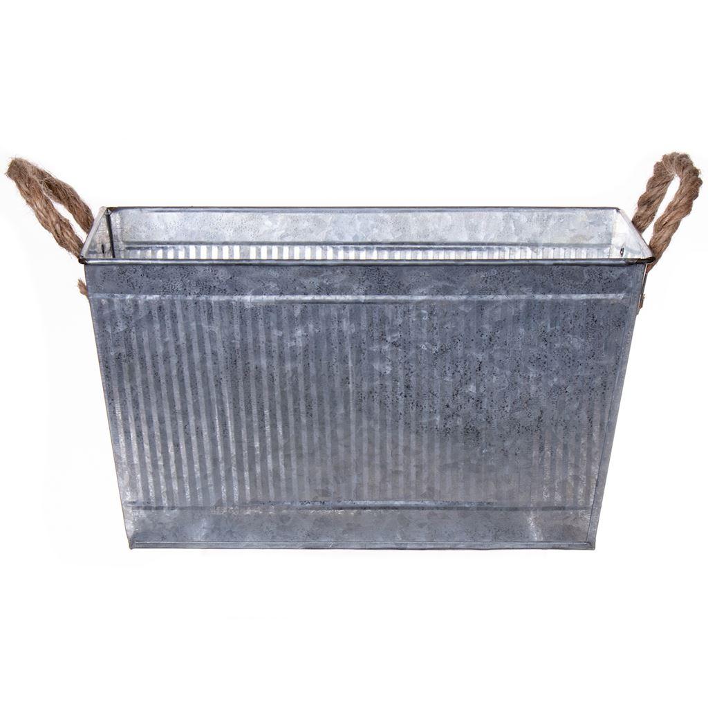 Obdélníkový květináč BIMETO s uchy, drážky, zinek, stříbrný, 29x19x15cm, Ø Ø25 cm