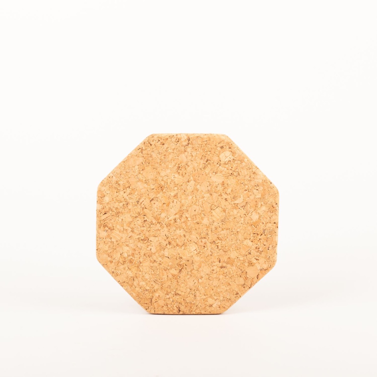 Osmihranný podšálek z lisovaného korku MANARA, přírodní, 1,5cm, Ø14cm