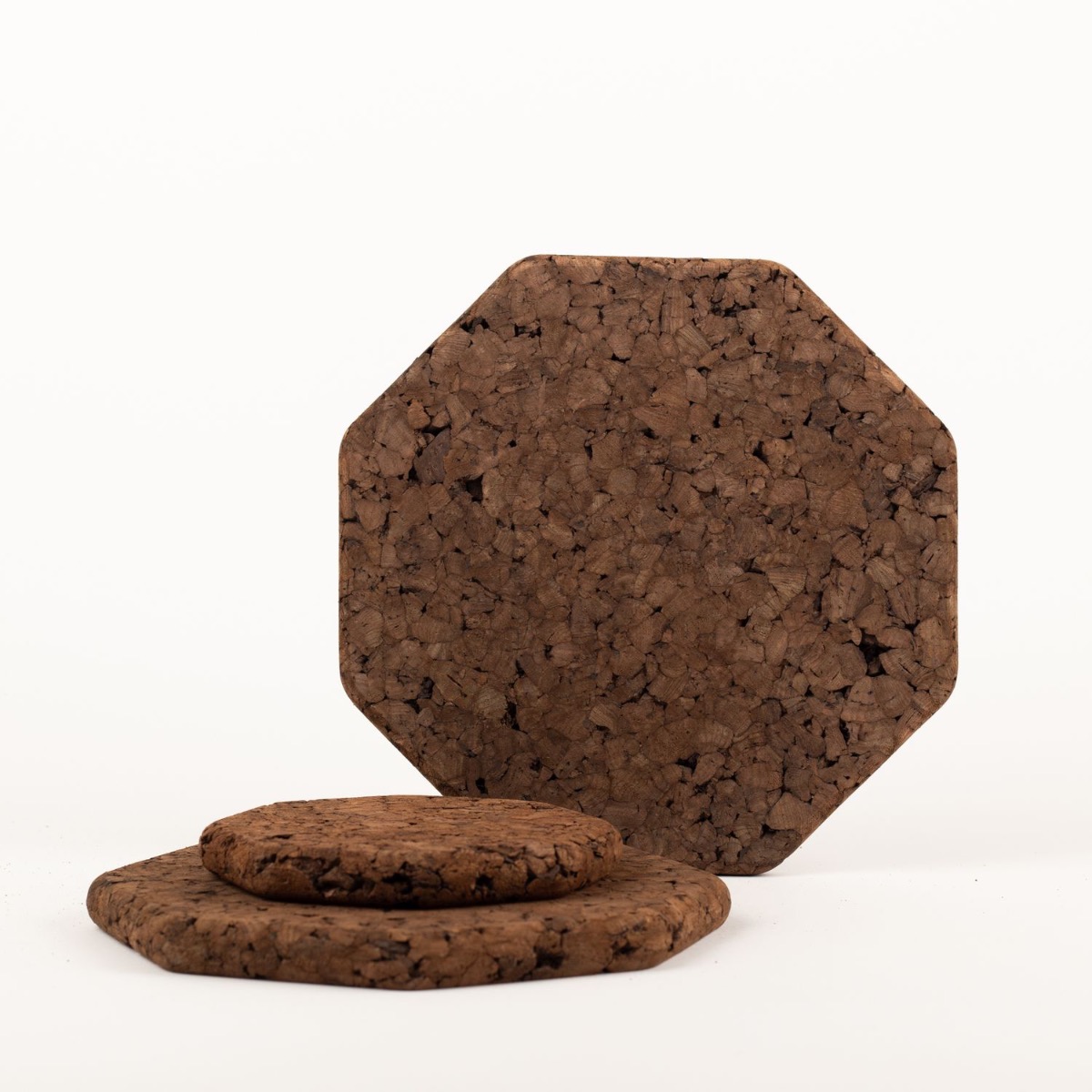 Osmihranný podtácek z lisovaného korku MANARA, tmavý, 1,8cm, Ø14cm