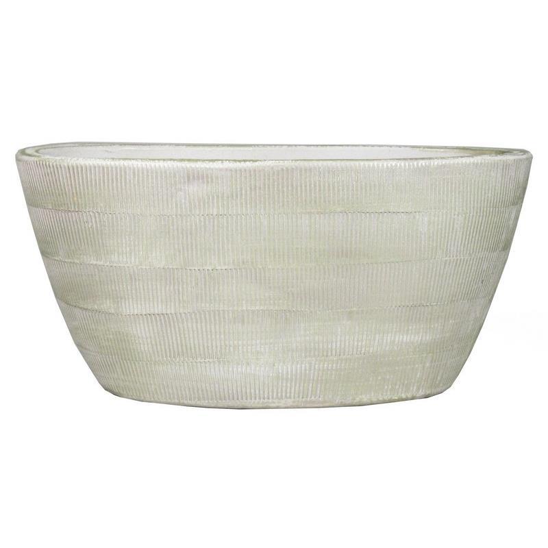 Oválný keramický květináč DELTA s drážkami, světle šedobílý, 30x15x14cm