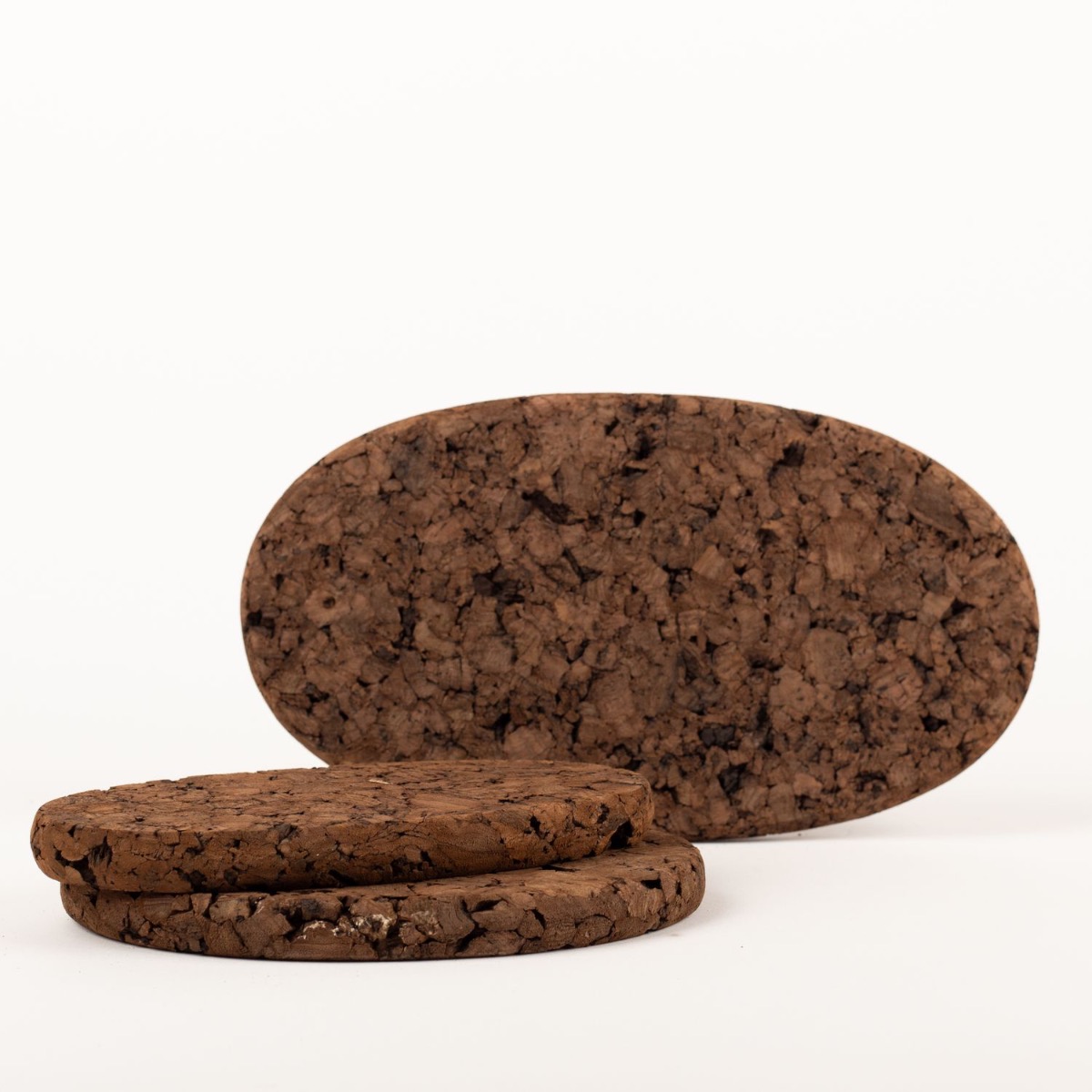 Oválný podtácek z lisovaného korku MANARA, tmavý, 20x10x1,8cm