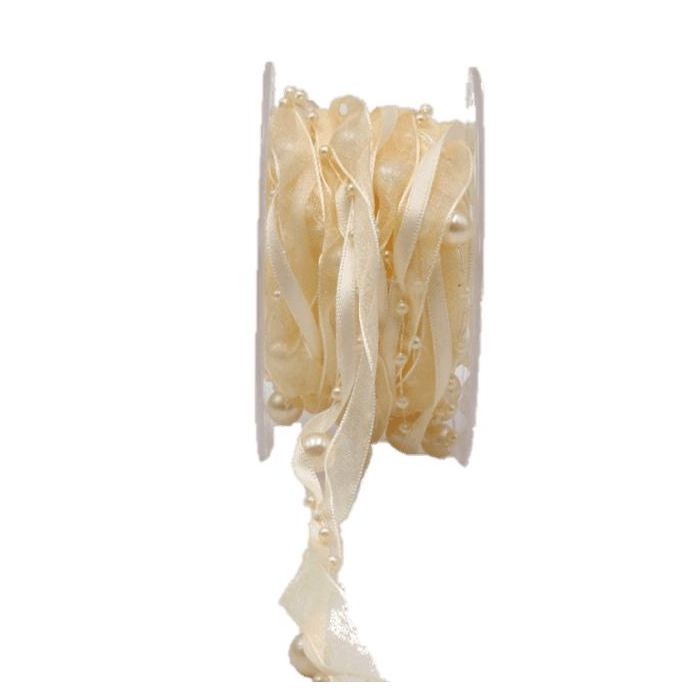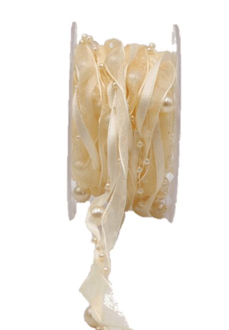 Ozdobná perleťová stuha CARESA ze šifonu a saténu, krémová, 5m, 20mm