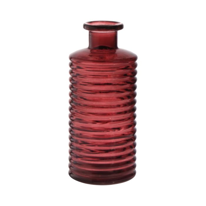 Ozdobná skleněná láhev STUART s drážkami, červenohnědočirá, 21,5 cm, Ø9,5 cm