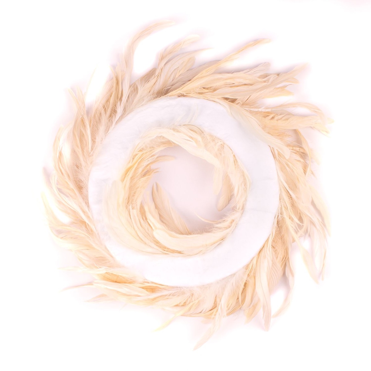 Péřový věnec páv NORDIAN, bělený bílý, Ø40cm