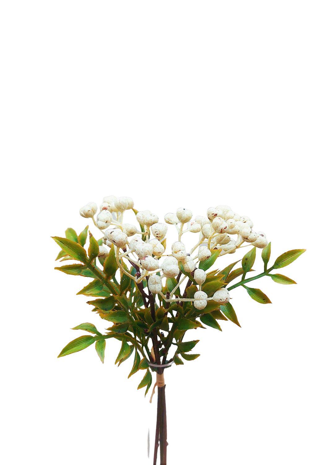 Plastová jeřabinová větev ELNATAN ve svazku, plody, bílo-krémová, 30cm