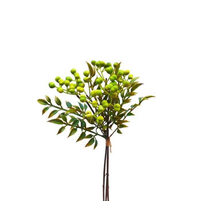 Plastová jeřabinová větev ELNATAN ve svazku, plody, zelená, 30cm