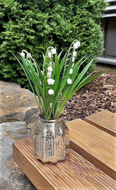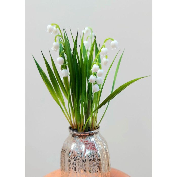 Plastová květina konvalinka NIKISHA ve skleněné váze, bílá, 20cm