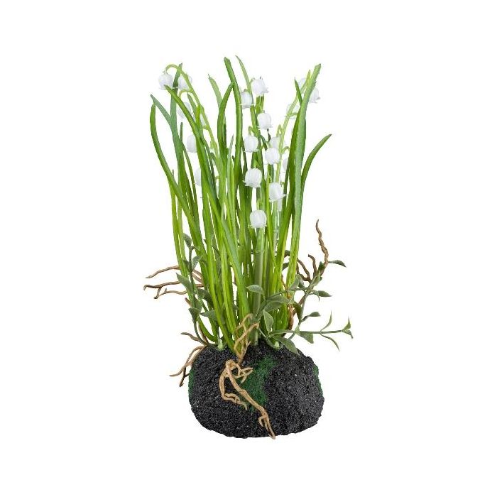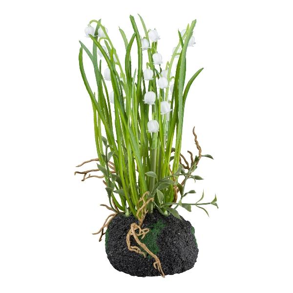 Plastová květina konvalinka PERFAS v kouli ze země, kořeny, bílá, 22cm