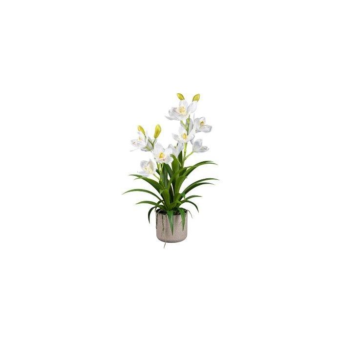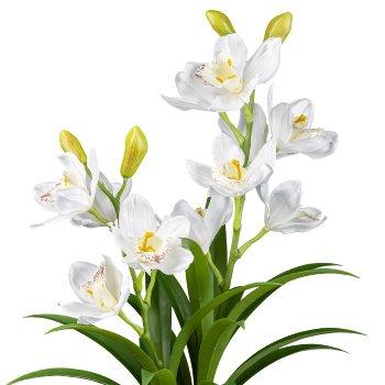 Plastová květina orchidej Cymbidium CANFOL, melaminový květináč, kořeny, bílá, 60cm
