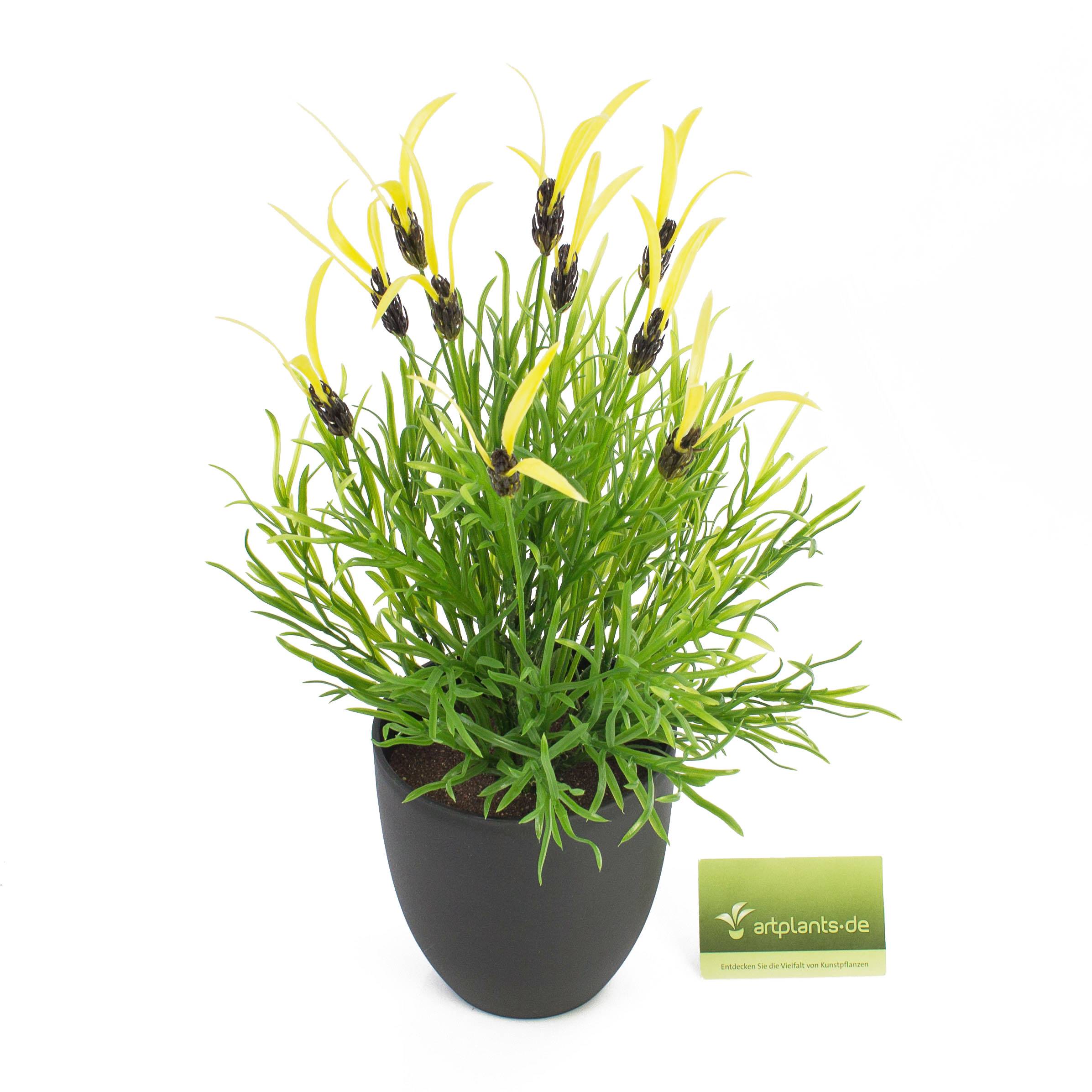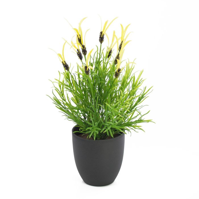 Plastová levandule hlávkovitá LETIZIA v dekoračním květináči, žlutá, 40cm, Ø4cm