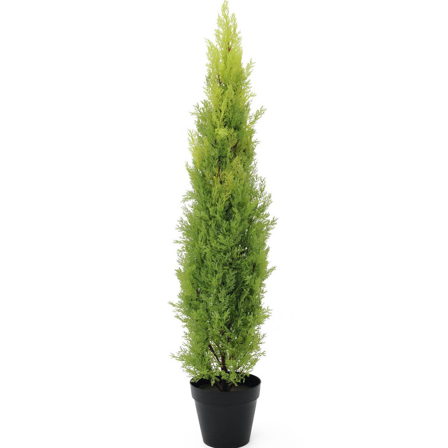 Plastová rostlina cypřiš MINNA, v okrasnem květináči, pro interiér i exteriér, světle zelená, 120cm