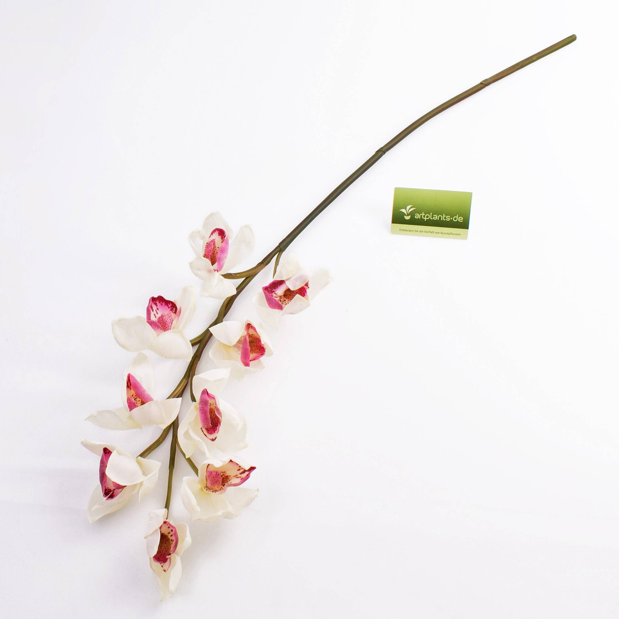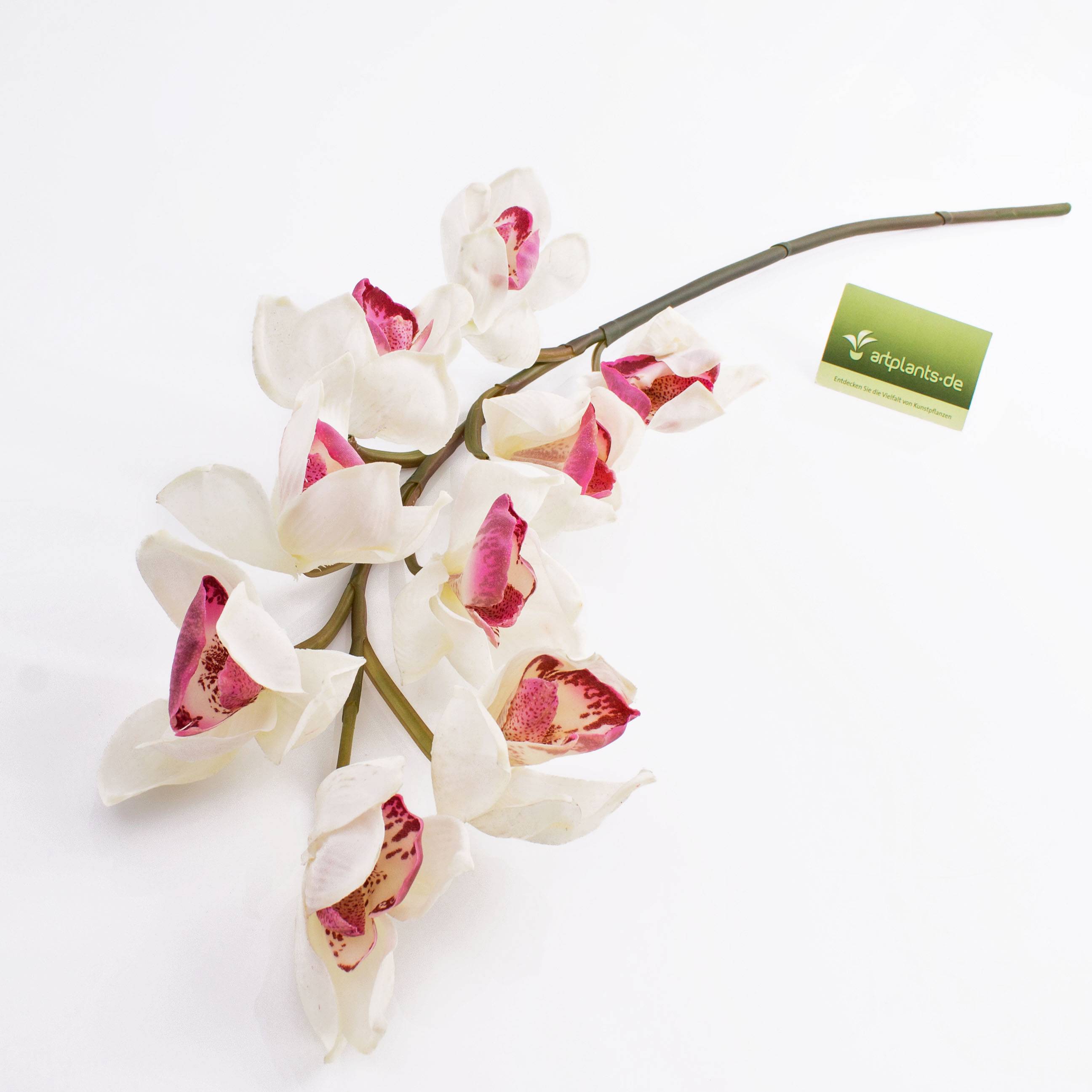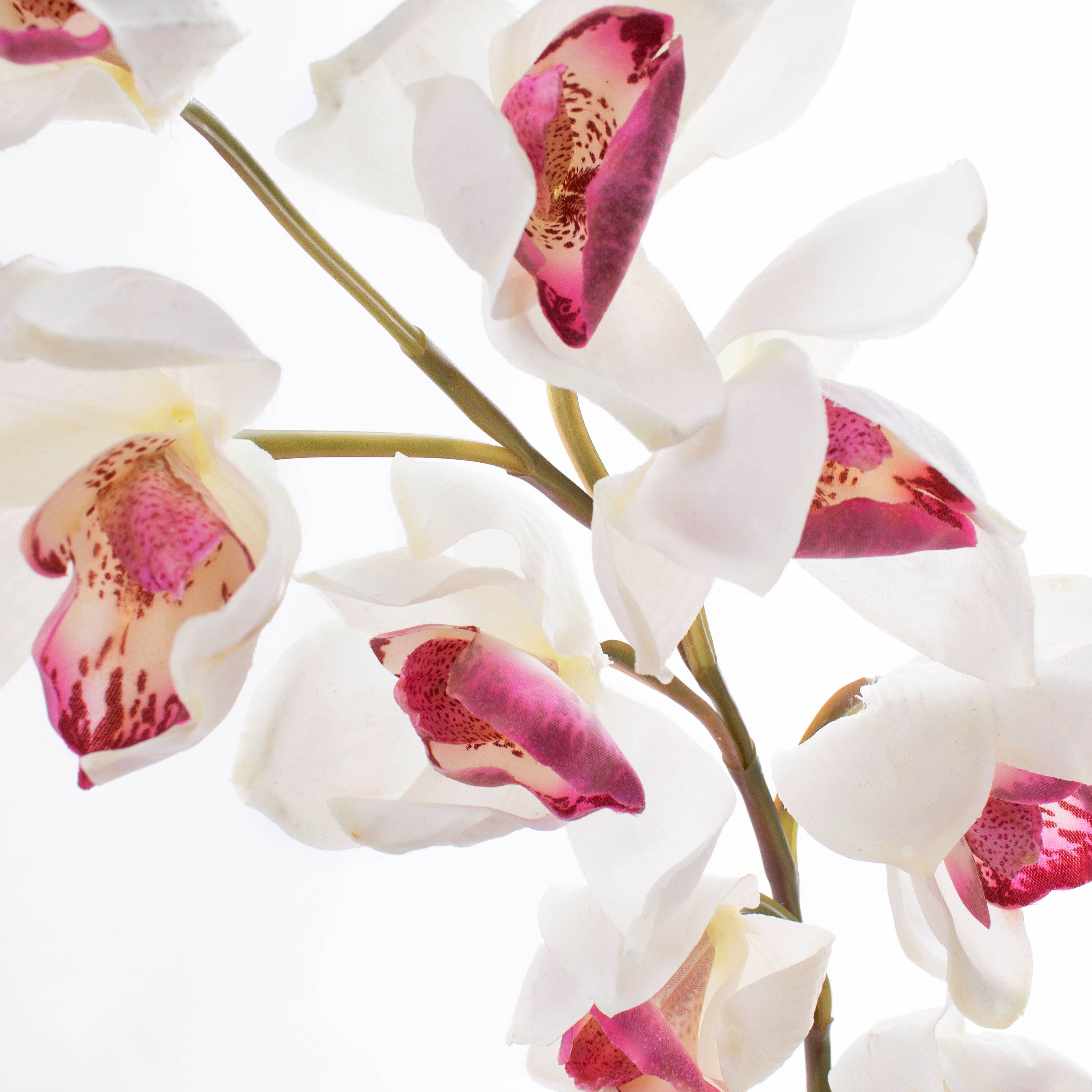 Plastová větev orchideje cymbidium OKSANA, bílo-růžová, 80cm