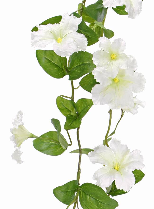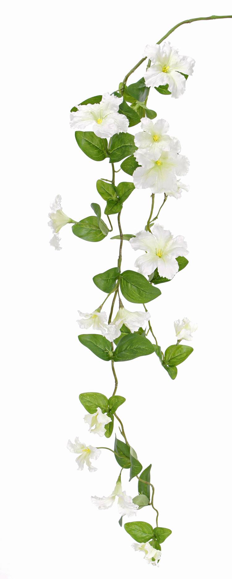 Plastová větev petúnie MARTHE, bílo-zelená, 130cm, Ø4-9cm