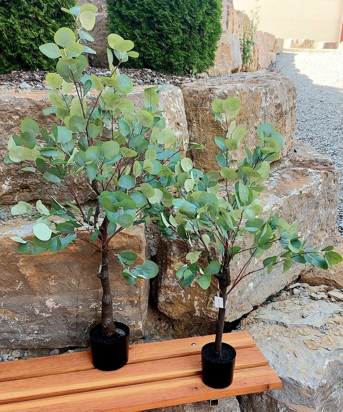 Plastový eukalyptový strom WISGARD, umělý kmen, zelenošedý, 90cm