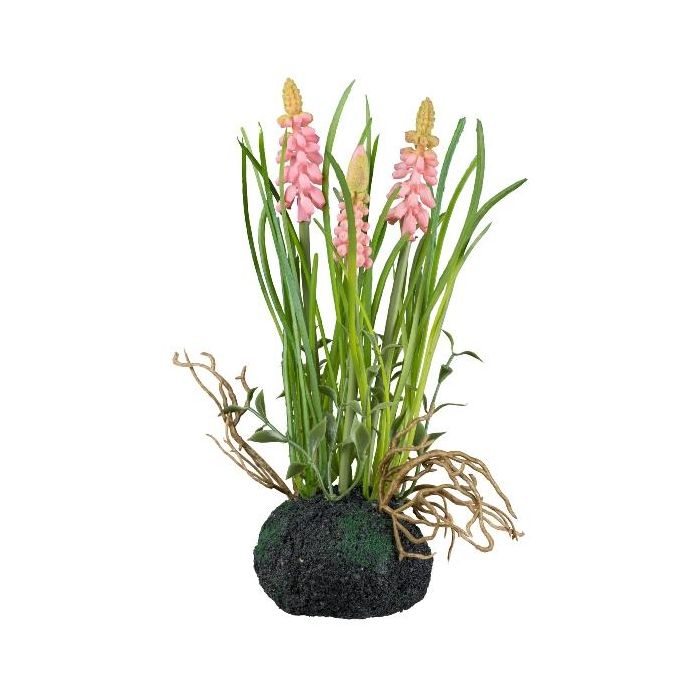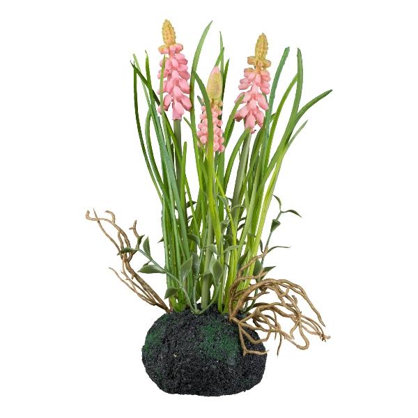 Plastový květ hyacintu HUNMY v kouli, kořeny, růžový, 22cm