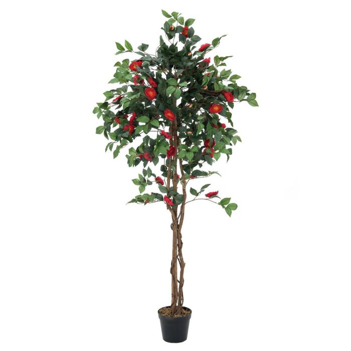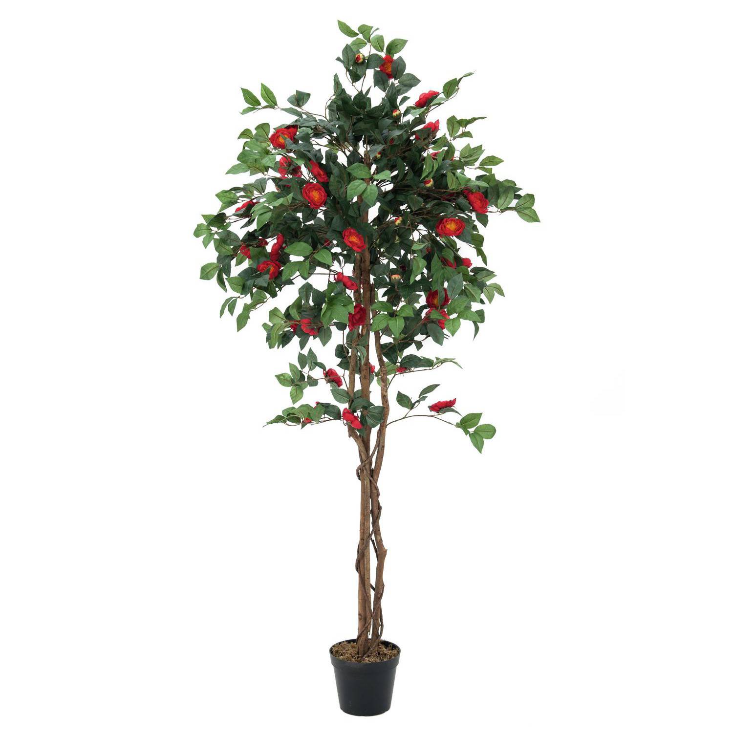 Plastový strom kamelie COSTIA, skutečné kmeny, s květy, červená, 180cm