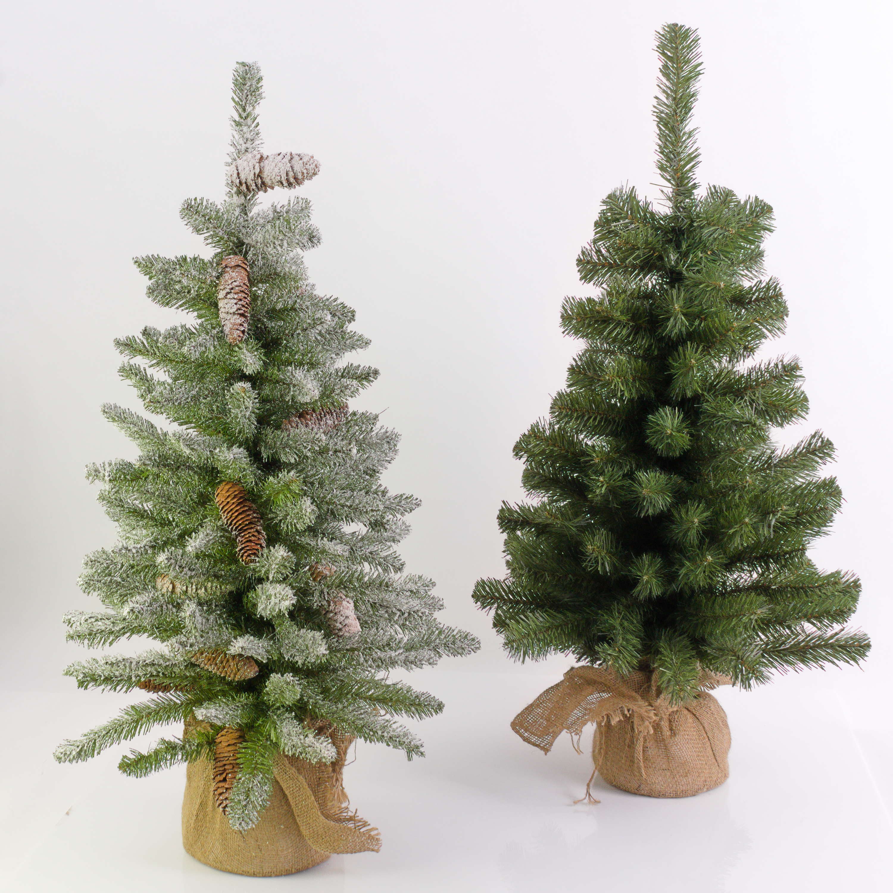Plastový vánoční stromek WARSCHAU, jutový pytel béžová, 90cm, Ø50cm
